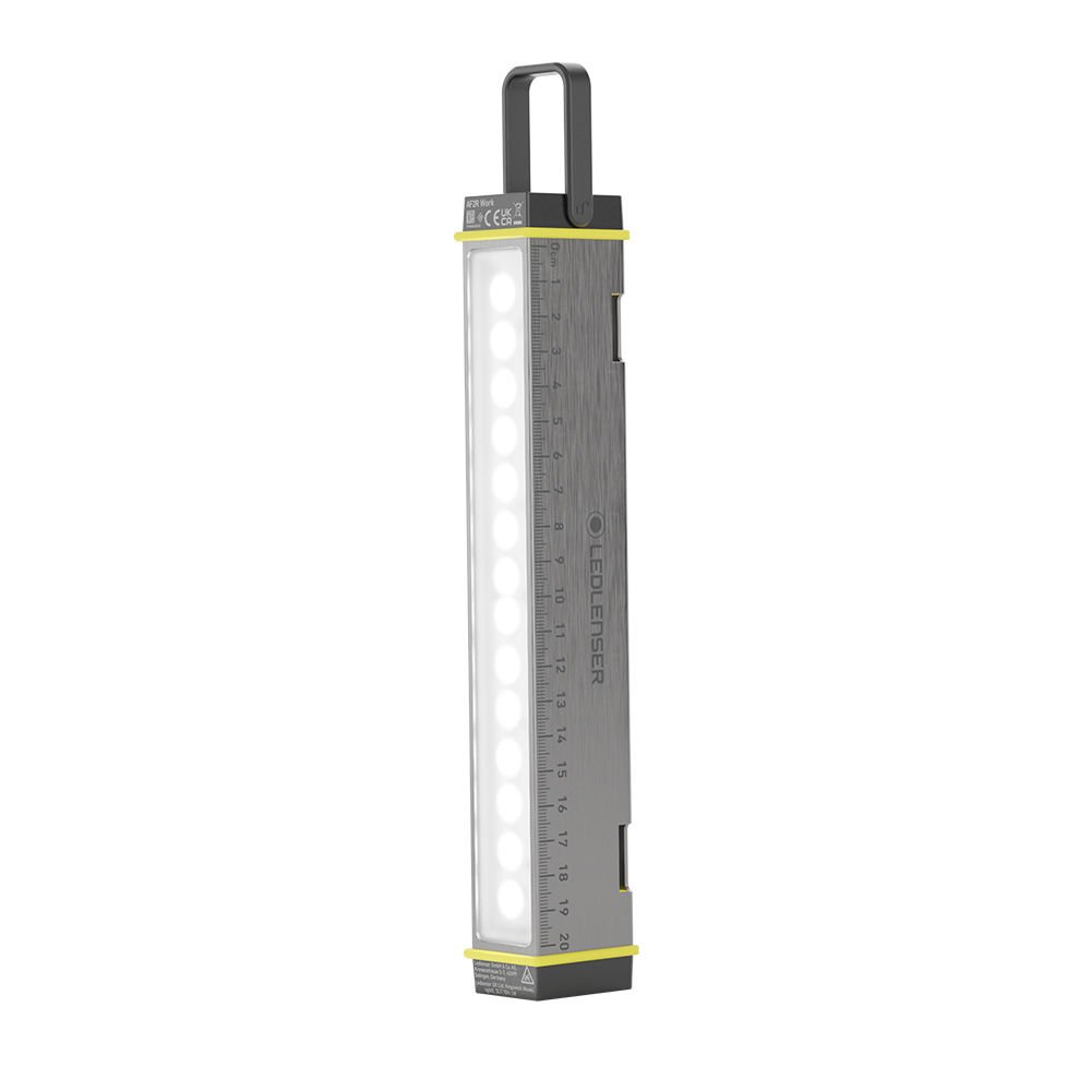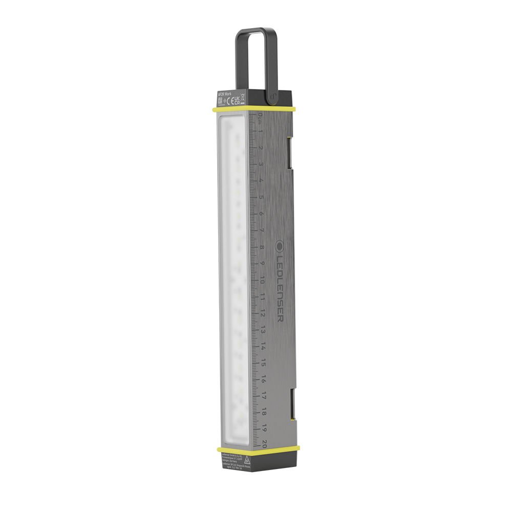 5 Mod 100% 75% 50% 25% 5% Lümen 1000 700 500 200 50 Mesafe 45 M 35 M 25 M 15 M 10 M Aydınlatma Süresi (Saat) 1,75 s 2 s 4,5 s 9 s 35 s IP Sınıfı IP54 Kullanılan Pil Li-Ion rechargeable Battery 4800 mAh Renk Sıcaklığı 6000 - 7000K Çalışma alanınızı aydınlatır, sigorta kutularını veya araba motorlarını kontrol etmenize yardımcı olur veya kaza gibi durumlarda uyarı lambası olarak kullanılabilir.Ledlenser AF2R Work, en küçük alan aydınlatma modelimizdir ve son derece çok yönlüdür.Kompakt, hafif, çok amaçlı.Beyaz ışık için 5 parlaklık seviyesi, kırmızı ışık için 2 parlaklık seviyesi ve yanıp sönme modu.Kauçuk kanca, mıknatıs, cırt cırt bantlar veya vida deliği aracılığıyla çeşitli montaj.Güçlü pili, USB-C ile kolayca şarj edilebilir.Aynı zamanda cetvelli, kaymaz şok korumalı sağlam alüminyum gövde; toz ve su geçirmez (IP54)