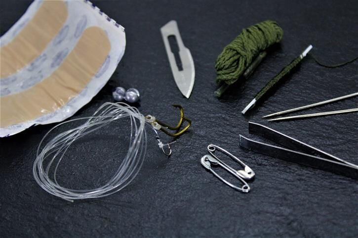 - BIÇAK İÇİNDEKİ AKSESUARLAR: Balık tutma Kiti, Dikiş Seti, Neşter, Pansuman Bandı, Cımbızlar, Kalem, Pusula, Pill magnezyum.