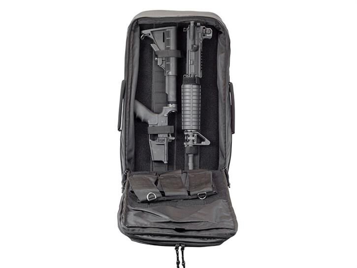 Modüler ayarlanabilir bağlama sistemi sayesinde silahın güvenli biçimde sabitlenmesini sağlar. Geniş aksesuar bölmesi MOLLE ve cırt cırtlı sistemlere uyumlu olup, şarjörler ve ek parçalar için fazlasıyla yer sunar. 6 adet şarjör kapasiteli çıkarılabilir şarjör çantası ürüne dahildir. Ana bölme, kilitli fermuar yapısıyla silah güvenliğini üst seviyede tutar.